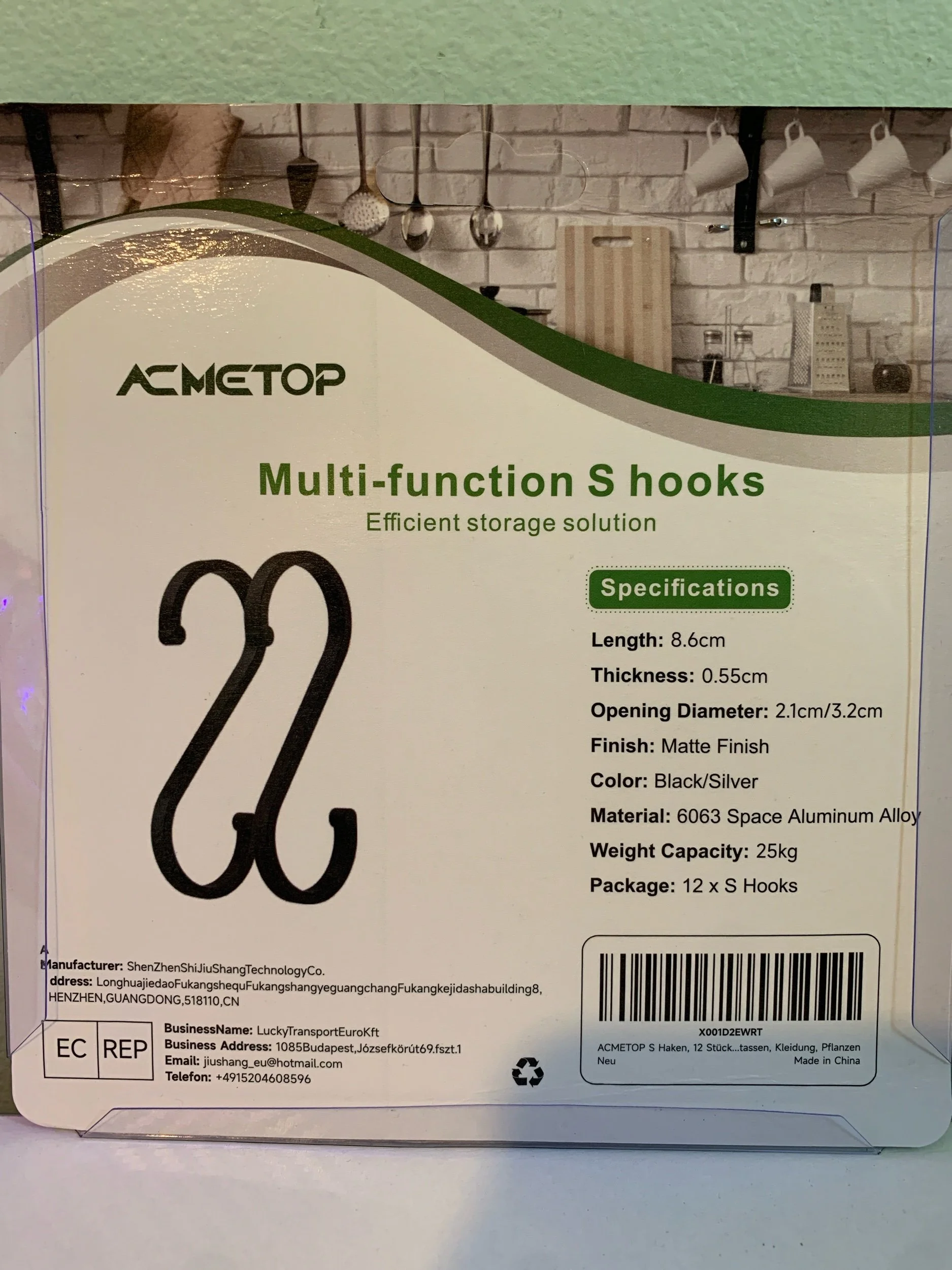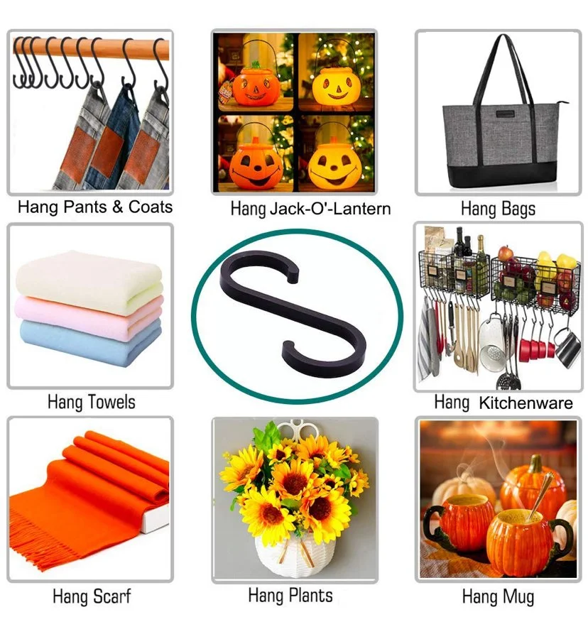 ACMETOP Multi‑Function S Hooks – 12‑Pack (Black/Silver)